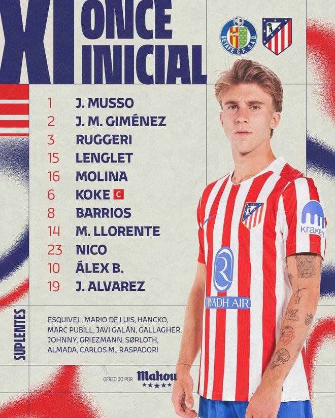 马竞客战赫塔费:阿尔瓦雷斯、巴埃纳首发,冈萨雷斯出战