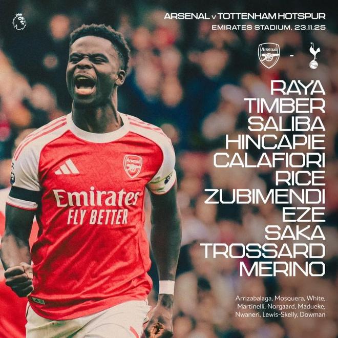 北京时间11月24日0:30,英超第12轮迎来北伦敦德比,阿森纳坐镇酋长球场迎战托特纳姆热刺,本场主裁判为迈克尔-奥利弗,赛前双方首发出炉。