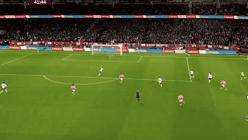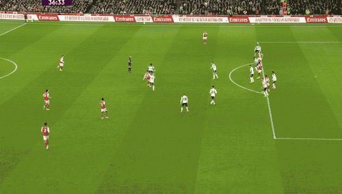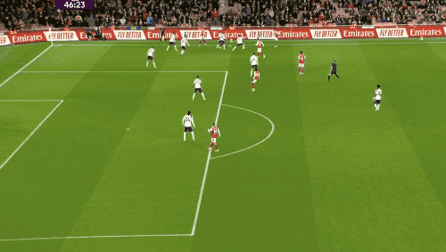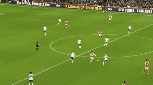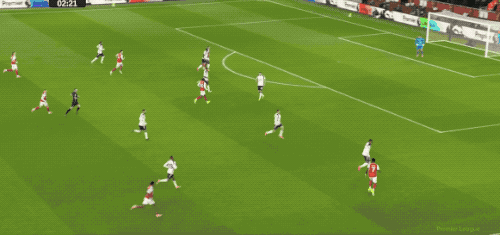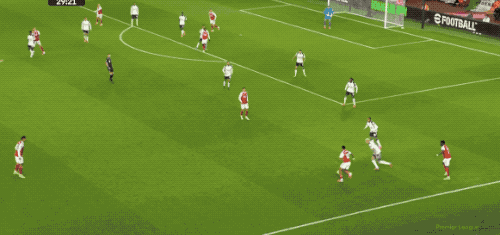 第3分钟,萨卡传中,埃泽精妙挑传,赖斯的劲射被维卡里奥挡了出来,皮球打在丹索的身上,差点自摆乌龙。