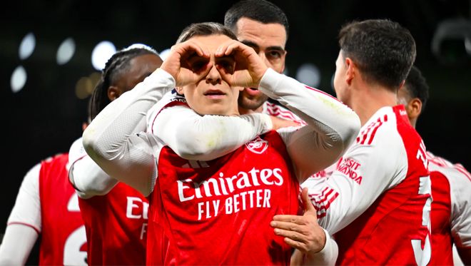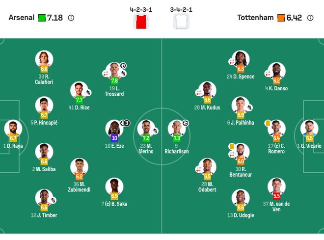 北京时间11月24日凌晨,英超第12轮迎来北伦敦德比,领头羊阿森纳坐镇主场迎战热刺。第37分钟、第41分钟,特罗萨德和埃泽双双破门,热刺半场0射门。下半场开始1分钟,埃泽梅开二度。第55分钟,理查利松吊射世界波,热刺第一次射门就取得进球。第76分钟,埃泽完成帽子戏法。最终,阿森纳主场4-1大胜热刺,将积分榜上的领先优势扩大到了6分。