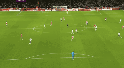 第72分钟,萨卡禁区内稍作调整兜射远角,维卡里奥拼尽全力,才将球扑出底线。